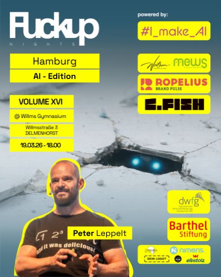 4 mutige Menschen stellen sich auf eine Bühne und erzählen ihre Geschichte über das eigene Scheitern im KI-Ökosystem. Sie haben Fehler gemacht, sind gestürzt und wieder aufgestanden. Sie haben gelitten und gelernt, gewagt, verloren und gewonnen. Dieses Konzept heißt FuckUp Nights, findet seit 2012 überall auf der Welt statt und kommt nun mit Fokus auf AI und Schule nach Delmenhorst.